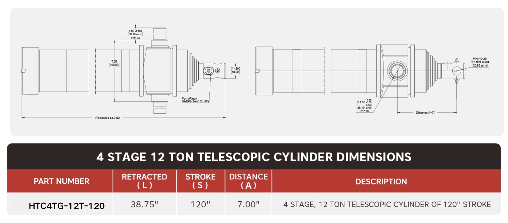 "HTC4TG-12T-120", 4 สเตจ, 12 ตัน 120" กระบอกสูบแบบยืดไสลด์