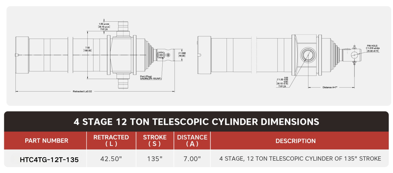 "HTC4TG-12T-135", 4 สเตจ, 12 ตันจาก 135" กระบอกสูบแบบยืดหดได้