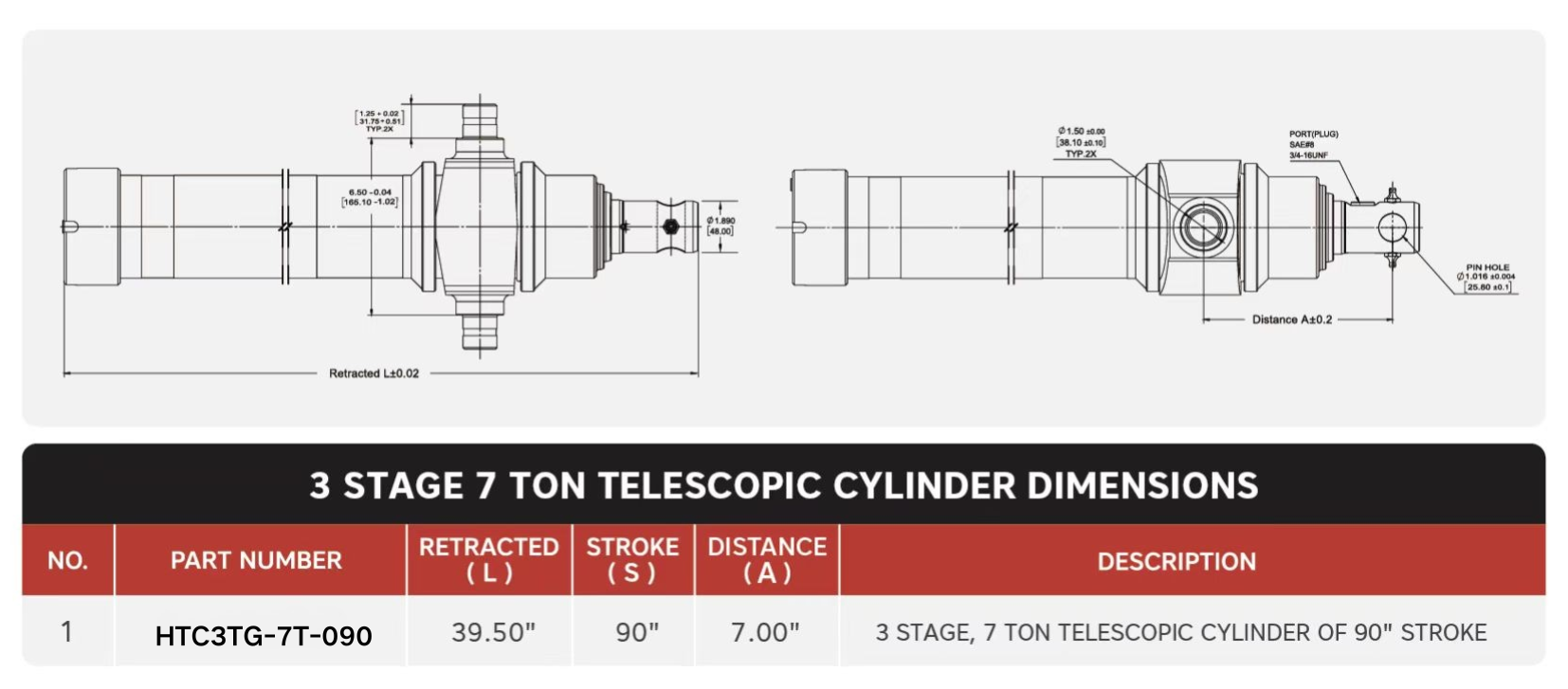 "HTC3TG-7T-090", 3 สเตจ, กระบอกสูบแบบยืดหดได้ 7 ตัน 90"