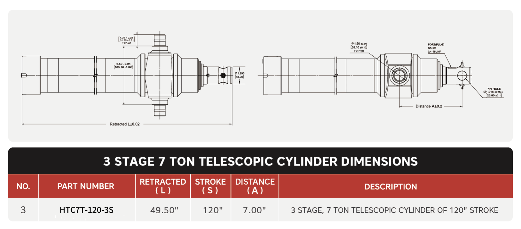"HTC3TG-7T-120", 3 สเตจ, กระบอกสูบแบบยืดหดได้ 7 ตัน 120"